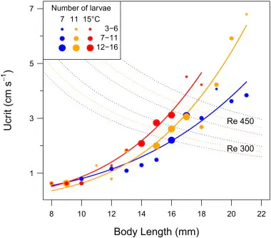 Ontogeny of critical swimming speed in larvae of Atlantic herring reared at 7, 11, and 15 °C. Image credit: Marta Moyano